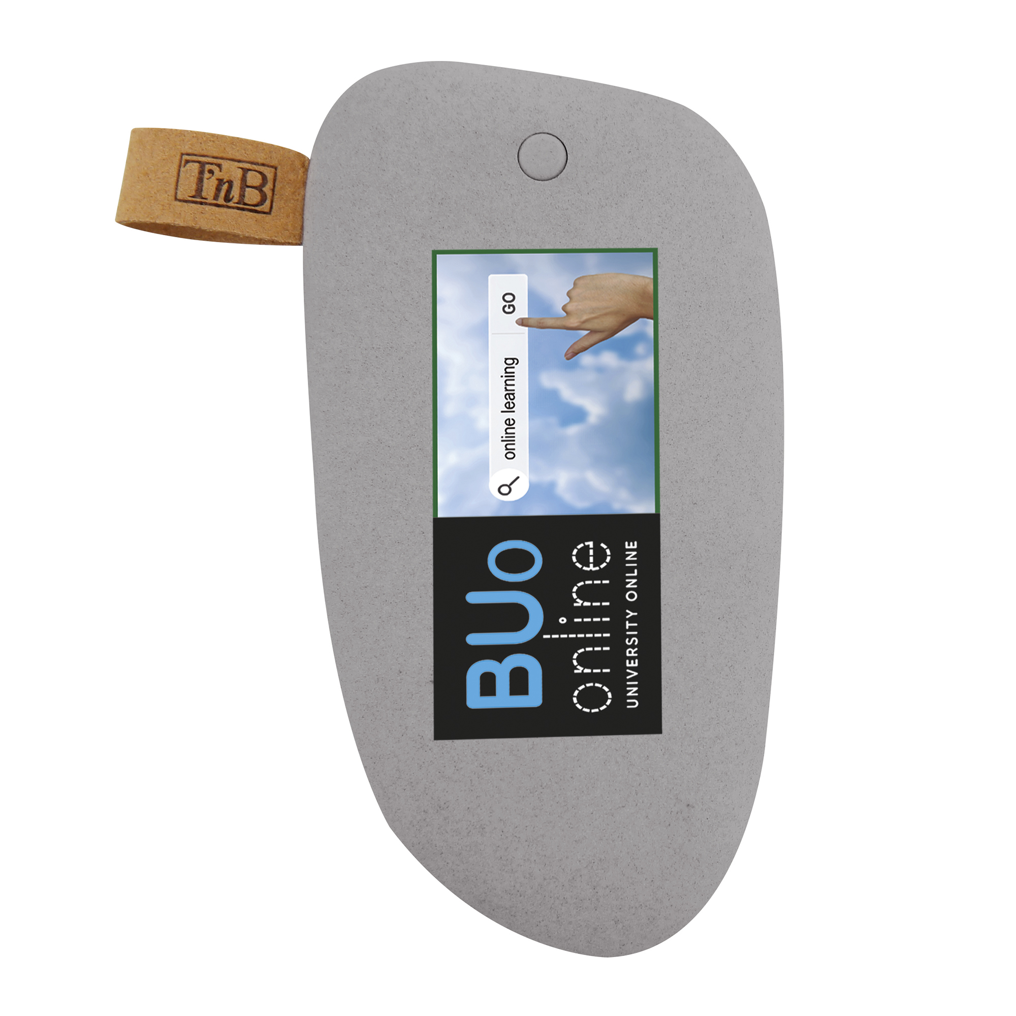 Bater¡a externa compacta de 4000 mAh con forma de piedra. El nivel de carga se indica con 4 luces. Incluye cable micro USB.